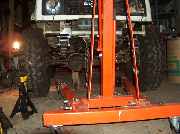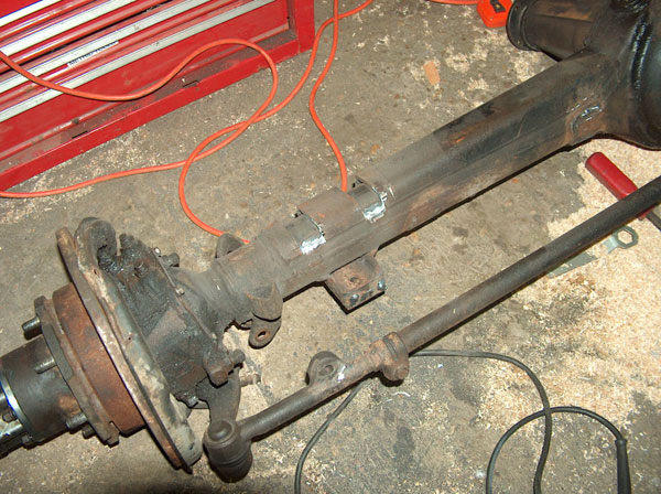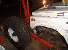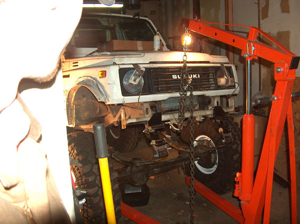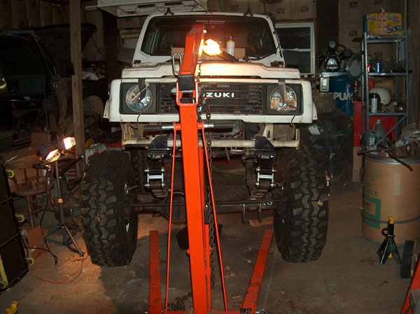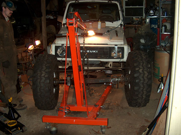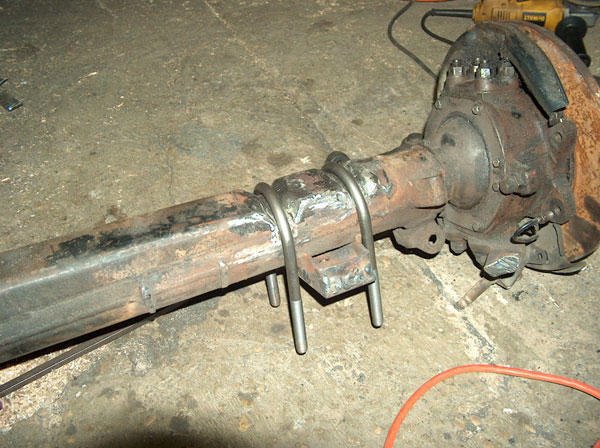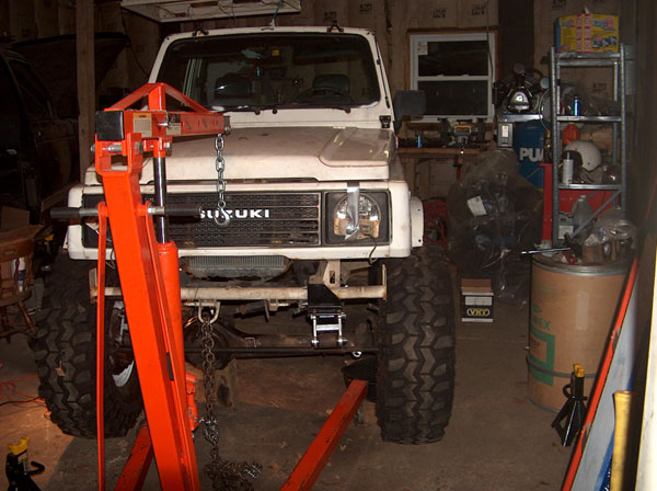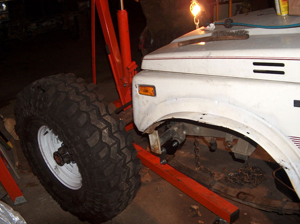 So i figured that an 85 Toy axle was the ideal axle to swap in because it has the longest under-side gusset of all their solid front axles. Well, i didnt take into account that the ubolts point down on toyotas, and i was pointing mine up! So i went out and had square ubolts made, only to then realize that the gussett is not parallel to the spring perch, and would cause the ubolts to sit on an angle. So the solution we came up with was to cut notches in the gussett for the ubolts to pass through. We cut them about an inch wide, and then welded all the openings shut and ground them down, to have what you see in the second picture. Now i can use my round ubolts again! the rest is all self explanatory- we just bolted up the front axle! Some people say you need to slot the center holes in the spring perches, because the zuk front springs are narrower. Well, they are, by about a half inch, i guess. Its a small enough amount that you can actually just push the springs, and theyll line up and then you can bolt it all together. Normally this would cause the bushings to bind, but with the missing links theres alot of slop in the links (just by design) so theyll absorb most of this. If i was going to drive this on the road, i would slot the perches. For a trail-only vehicle, im content to leave them like this for now. The last two pics show a mistake i made when i ordered the kit from Trailtough. I never mentioned that id be using Toyota axles, and well, apparently the suzuki axles use one small and one large spring plate up front, and the Toy uses all large. So im going to need to either exchange the smaller plate, or slot the openings so the larger ubolt required for the toyota axle will fit the plate. |