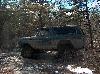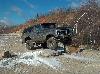 the maiden voyage! ...was a bust. About 15 minutes into the park the malfunctioning detroit in the front axle decided to blow my center ujoint in half. So i got into the play area, but never actually saw a trail. 5 minutes before that dave blew the same joint and it split the stub shaft in half. Later on Ox broke his traction bar on the rear axle in half, and with the portals he has so much axle wrap without that bar that we had to bring his back out too. Will punctured another gas tank, but we managed to patch it with some gum & he continued on. Later on while going thru a water hole a chunk of ice came up and knocked his serp belt off, but luckily didnt damage it and we just put it back on. Steve slashed one of his brand new X-Terrains, and then lost 4 of the 5 studs on that wheel when the lugnuts must have backed off due to the spare tire being on an aluminum rim, so we ended up pressing 2 new studs into the rotor on the trail, and then putting 3 more in on the trailer in the hotel parking lot when we got out. |