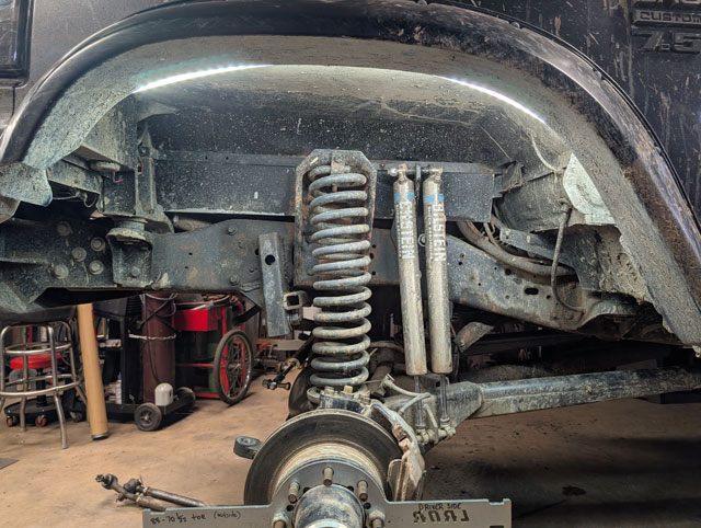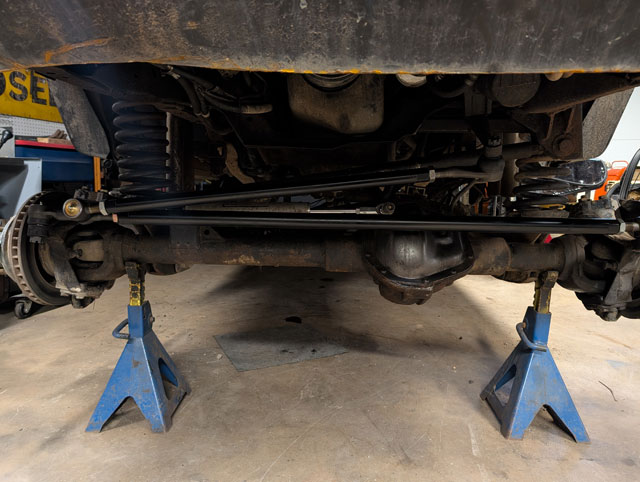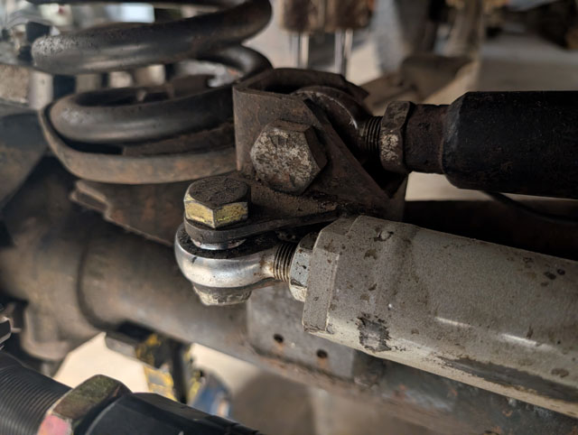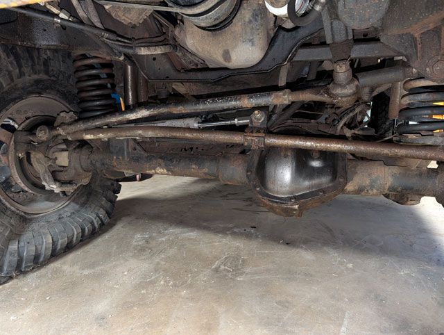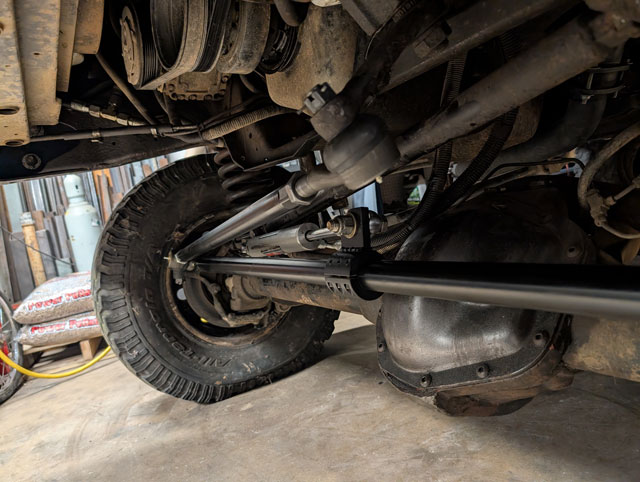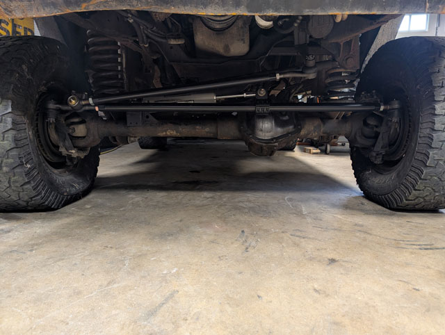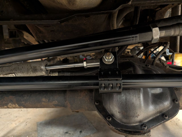 new steering! After mangling both my tierod and draglink on Crucible (at Rausch Creek), its time for an upgrade. The draglink is 1.25" .250" wall, but the tierod has been bumped up to 1.5" .375" wall. Beef! \ Had to build a new tierod mount for the ram, and then because everything is beefier, i had to moved the fixed mount over towards the center so that i could also move the tierod mount over, in order to clear the diff cover at full lock. |