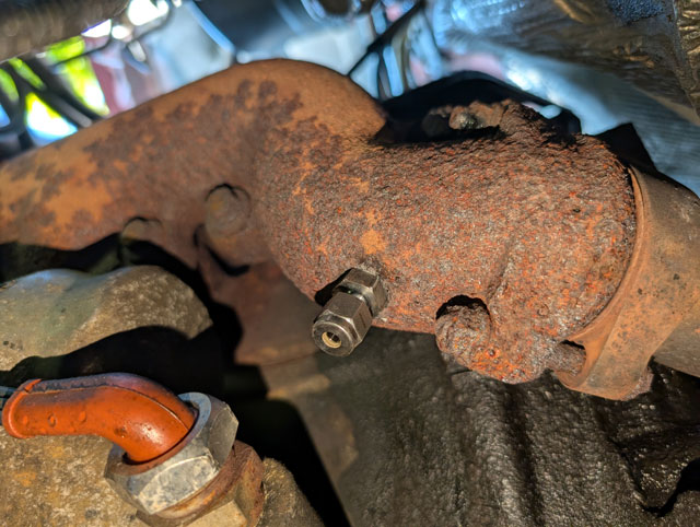 Anyone who wants their diesel tow rig to last, is gonna have a set of gauges in their rig. So here's mine! Autometer's GS Series gauges - pyro, trans temp & boost. The gauges & 3-pod pillar came from Strictly Diesel. the boost gauge is tied in right at the Map sensor. The trans temp right in the pressure port on the d.side of the trans, and the pyro in a bung post-turbo in my down-pipe. the knob is for the backlights- the GS series is LED which is alot brighter than the stock dash, so this allows me to dim them down to match the dash. Its just a cheap potentiometer from RadioShack, maybe $5. Update 4/2013: Finally got off my ass and moved the pyro to the d.side manifold where it belongs. Temp readings are much more accurate now. |